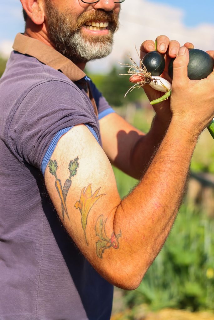 - Pause gourmande et découverte du potager biologique nourricier et pédagogique. Présentation des techniques de jardinage en culture biologique avec Damien Tourre, le maraîcher de cet éco-lieu. Nous avons appris pleins de choses. C’était tout simplement passionnant. Laurent aurait adoré être là.