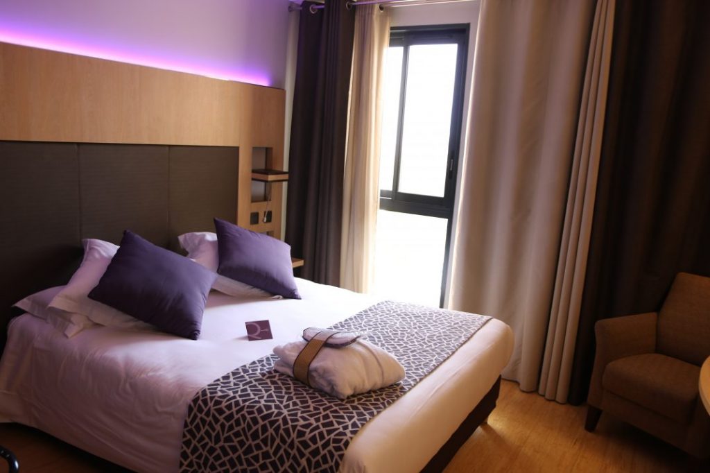 Nous avons eu une chambre privilège au 5ème étage. Une petite chambre avec tout le nécessaire (TV, sèche-cheveux, machine à café, bouilloire, peignoirs…). La salle de bain était très belle avec une grande douche à l’italienne. Nous y avons passé une très bonne nuit.