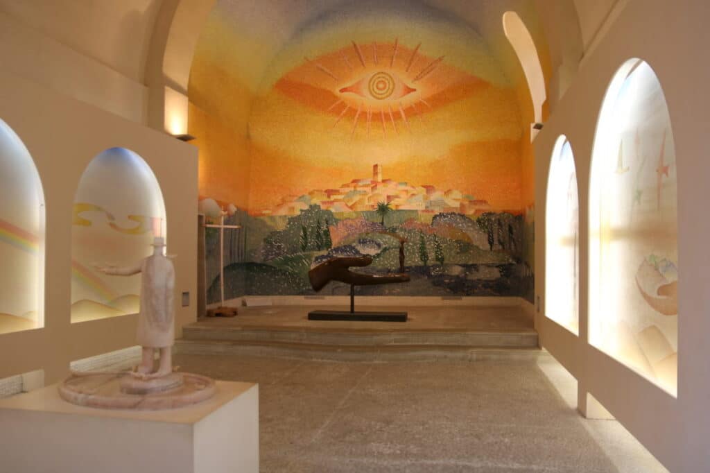 - La Fondation Maeght. Un musée ancré dans la nature qui rassemble une des plus importante collection européenne de peintures, sculptures, dessins et oeuvres graphiques du XXème siècle. C’est ici, que prône certaines oeuvres de Bonnard, Braque, Calder, Chagall (lui même enterré à Saint-Paul-de-Vence), Giacometti, Léger, Miro. Un vrai bonheur de passer d’univers en univers, tout en changeant d’environnement. Sitôt en pleine nature, sitôt en interieur. Chaque oeuvre est parfaitement intégrée dans son décor.