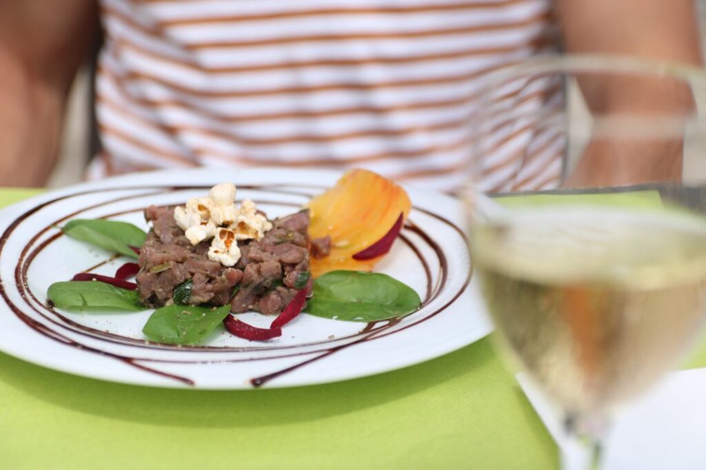 - La Cigale et la Fourchette – Larnas. C’est dans ce tout petit village perdu au milieu des vaches que se situe ce super restaurant labellisé Bistrot de Pays. Si vous ne connaissais pas ce label, je vous laisse allez voir sa charte et découvrir les différents Bistrots de Pays aux 4 coins de la France. Nous avons vraiment très bien mangé. Les produits sont frais, de saisons et surtout locaux. Ici, on mange Ardèche et c’est très très bon !