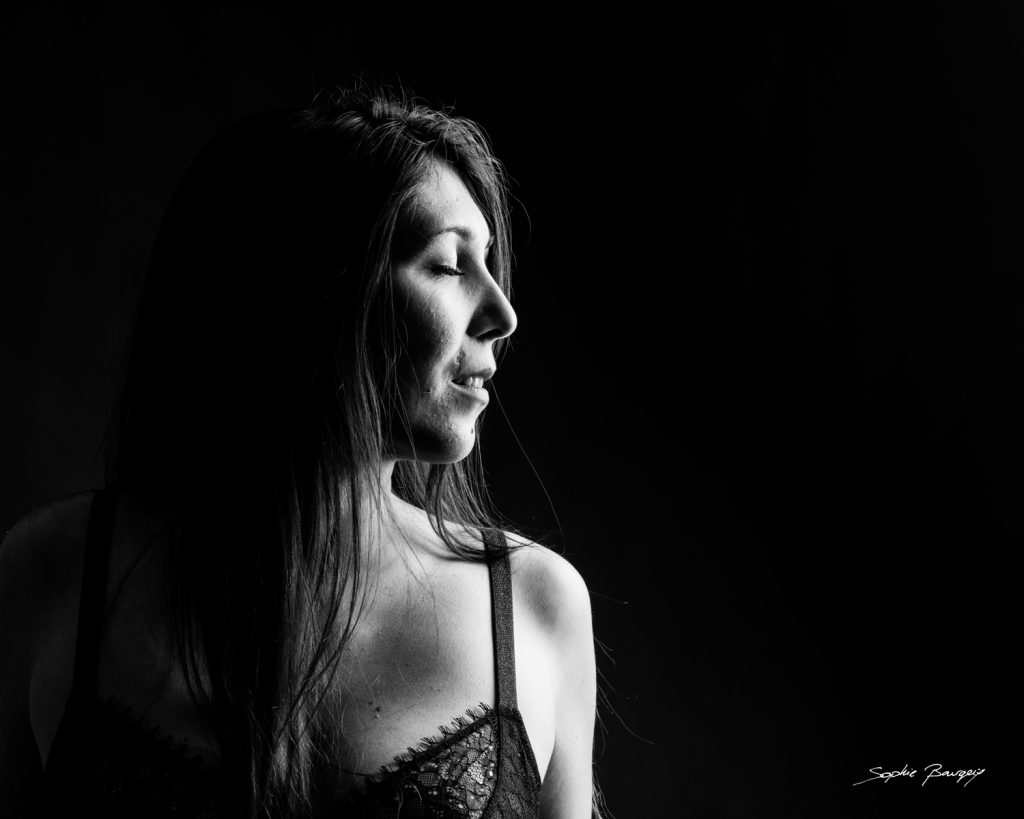 Après le conseil en image, on passe à la séance photo grandement menée par Sophie Bourgeix, qui je vous le rappelle est une photographe portraitiste noir et blanc de talent. Sophie vous met vraiment à l’aise et fait en sorte de faire émerger votre vrai VOUS ! Moi c’est la féminité qui se cachait en moi qu’elle a réussi à faire sortir tout au long de cette séance photo en studio. Et le résultat est superbe. Cette étape est vraiment complémentaire avec le conseil en image. Cela permet de mettre en application tout ce dont nous avons parlé avant.