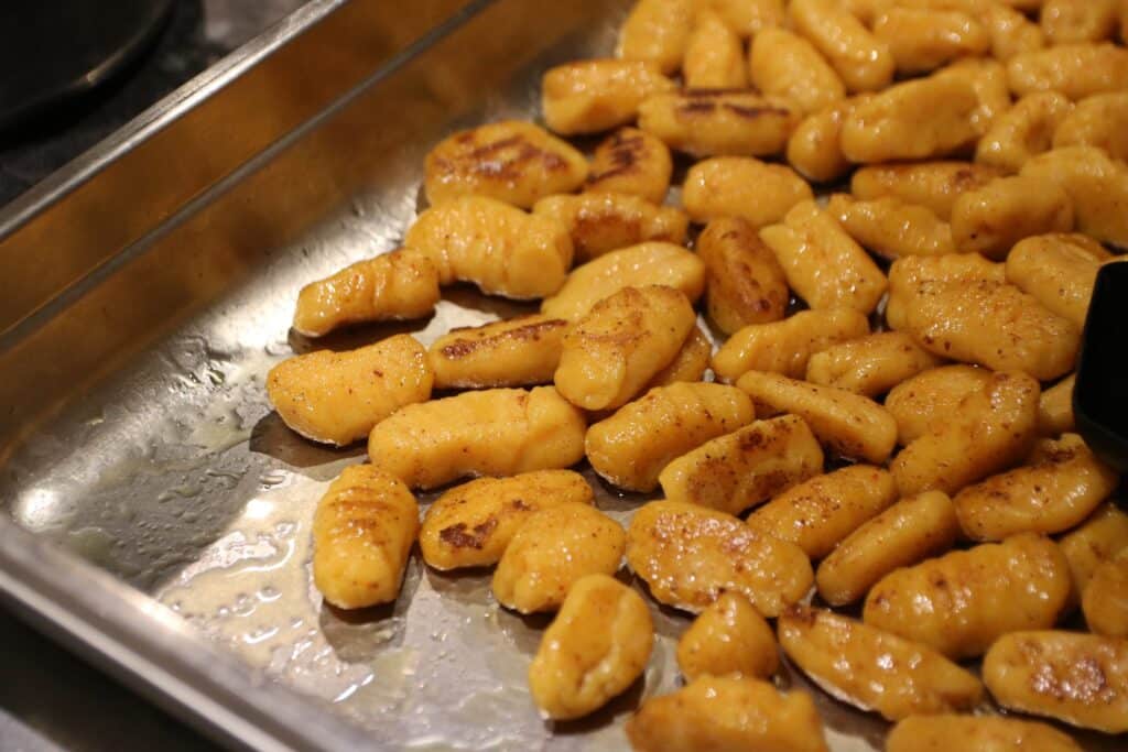 Loup en écailles de pomme de terre – Gnocchis de Butternut et jus de romarin