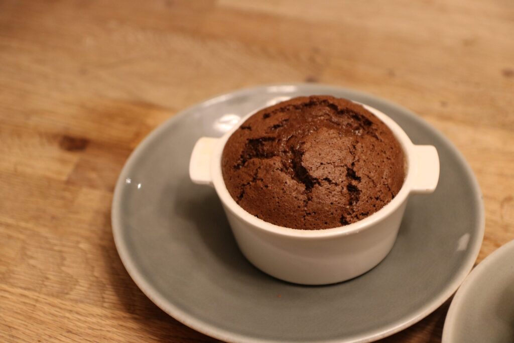 Soufflé au chocolat et caramel beurre salé