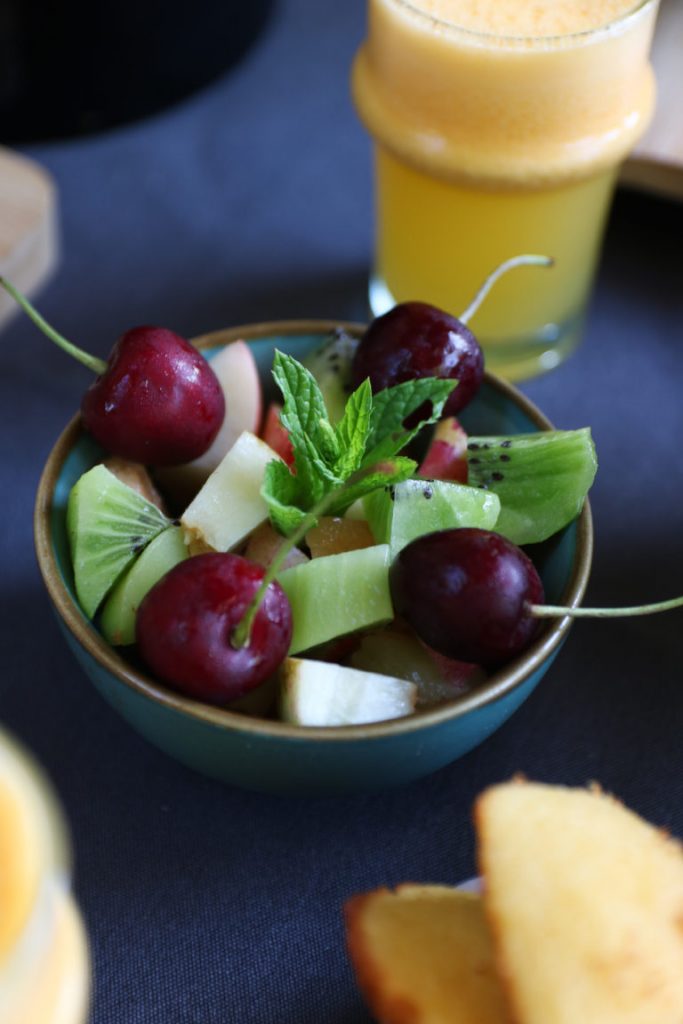 - Petit déjeuner healthy à base de produits frais et fait maison. Tout ce que j’aime: du jus d’orange pressé, des gourmandises faites maison, des produits de qualité et des plats faits minute (oeuf mollet, oeuf à la coque…).