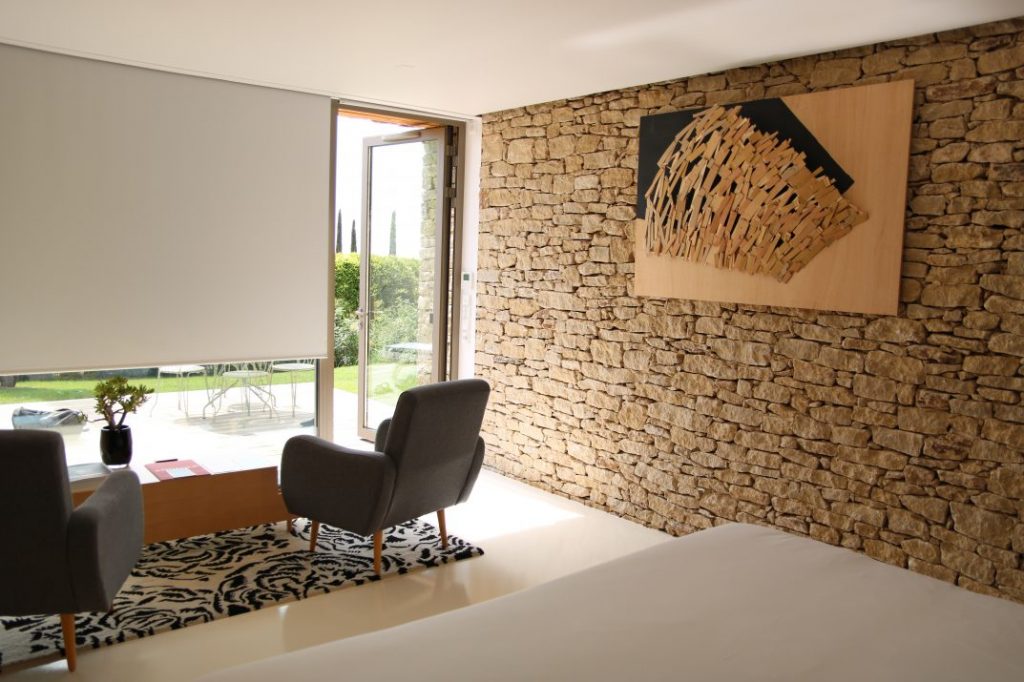 Comme je vous le disais un peu plus haut, le domaine est composé de 11 maisons et 8 suites nature. Chaque maison est unique dans sa conception, sa décoration, ses volumes, ses matériaux et ses oeuvres d’art. Le Domaine ne compte pas moins de 400 oeuvres d’art uniques. D’autres part, certains matériaux sont conçus exclusivement pour le Domaine et n’existe nulle part ailleurs dans le monde. Coup de coeur pour la Maison des artistes qui sert régulièrement de lieu de résidence pour les artistes. Wolenski ou bien Castelbajac sont déjà passés par là.