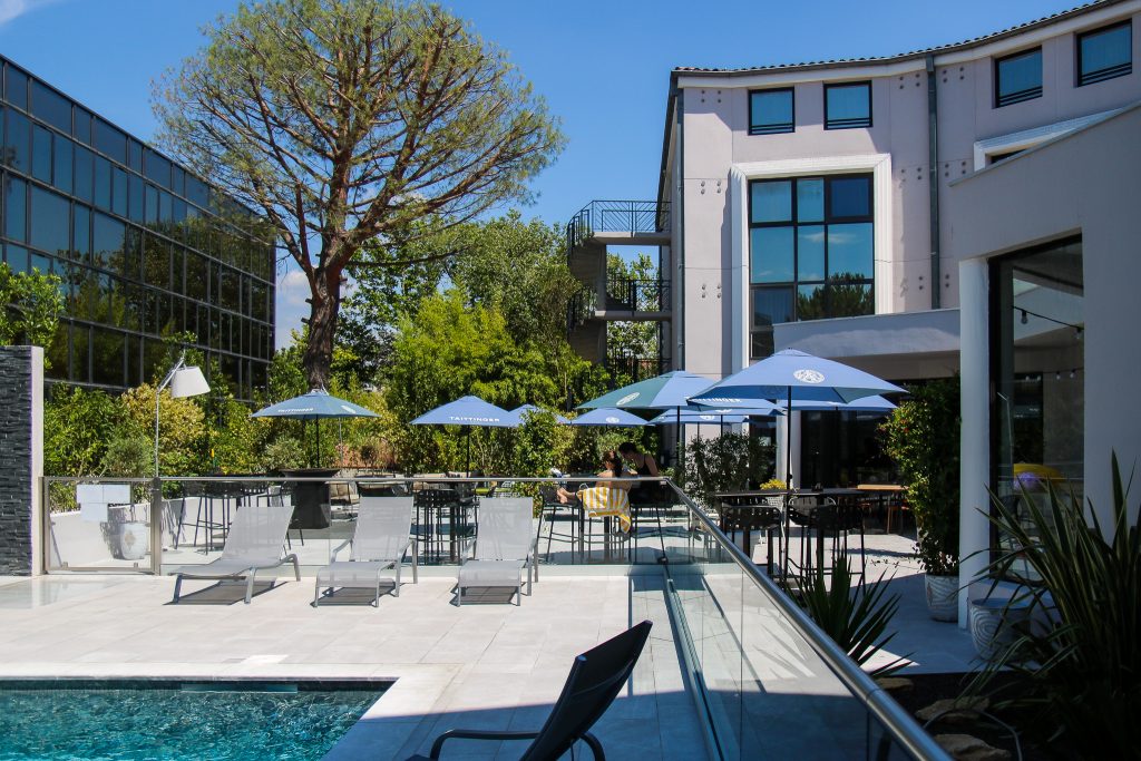 L’hôtel propose également une très belle terrasse avec piscine. L’occasion de se prélasser au soleil et de faire quelques longueurs en sirotant un cocktail.