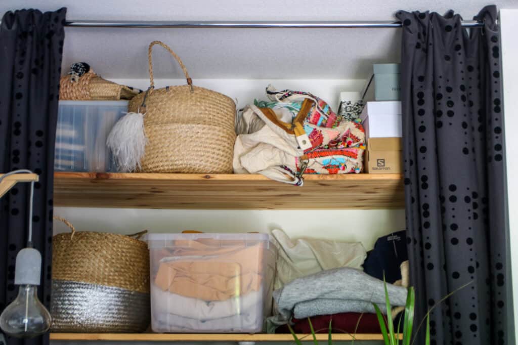 Dans mon placard, il n’y avait pas que des vêtements. Nous avons, également, fait le tri dans le linge de lit et les accessoires : ceintures, sacs et écharpes ! Plus rapide mais indispensable quand même ;-).
