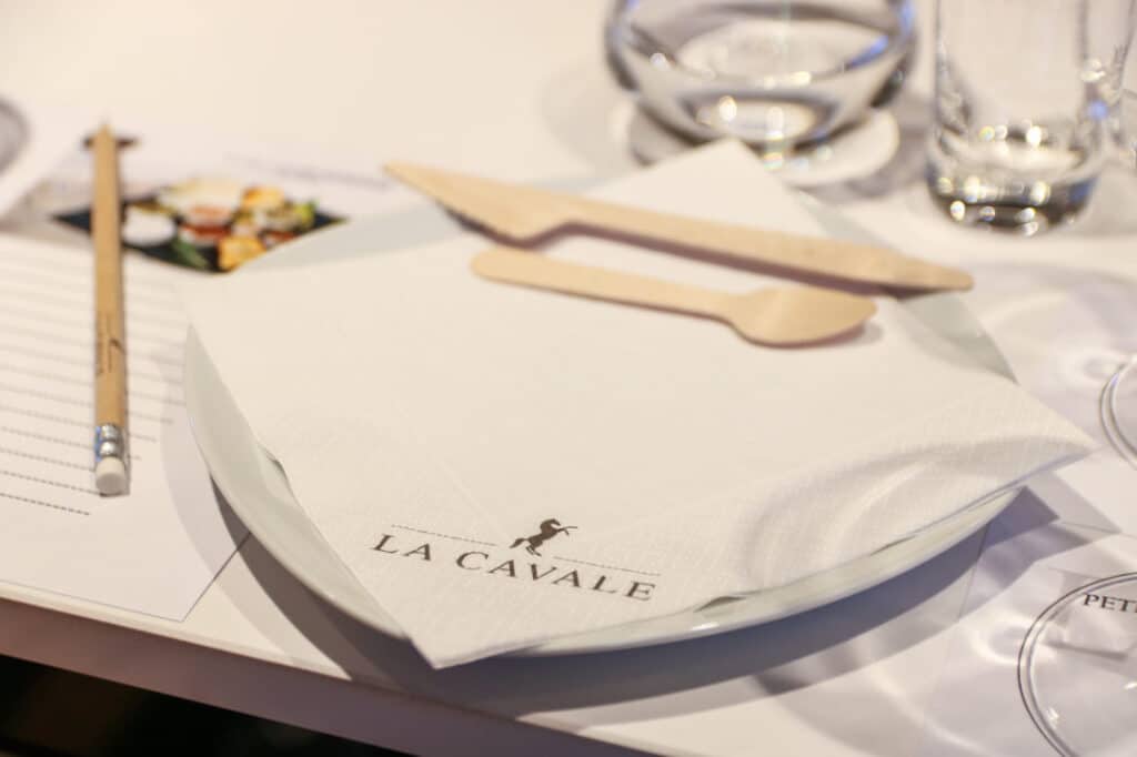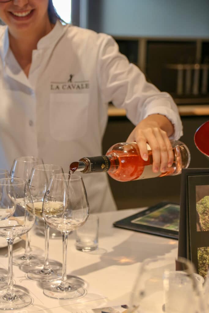 C’est en plein coeur du Luberon, entre Lourmarin et Cucuron, que se situe le domaine viticole La Cavale. C’est dans ce cadre idyllique que son propriétaire, Paul Dubrule (fondateur du groupe Accor), a voulu créer cet espace destiné à l’oenotourisme et à la dégustation/vente de vins. Un établissement imaginé par l’architecte Jean-Michel Wilmotte et construit par les compagnons du devoir. C’est seulement après 7 ans de travaux que La Cavale a vu le jour. Quand on pense que chaque pierre de ce bâtiment a été taillé à la main par des artisans locaux, on comprend mieux pourquoi la construction a été si longue. Mais honnêtement, le jeu en vaut la chandelle. À peine franchis le pas de la porte vous en prenez plein les yeux. Mais, ne vous inquiétez pas les papilles ne sont pas en reste !