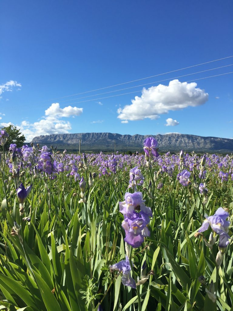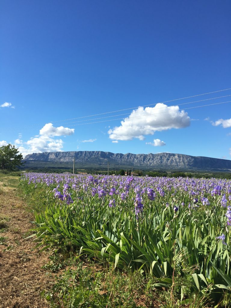 - Sur la route de Trets, vous pourrez l’admirer au Printemps avec un magnifique champ d’Iris au premier plan.
