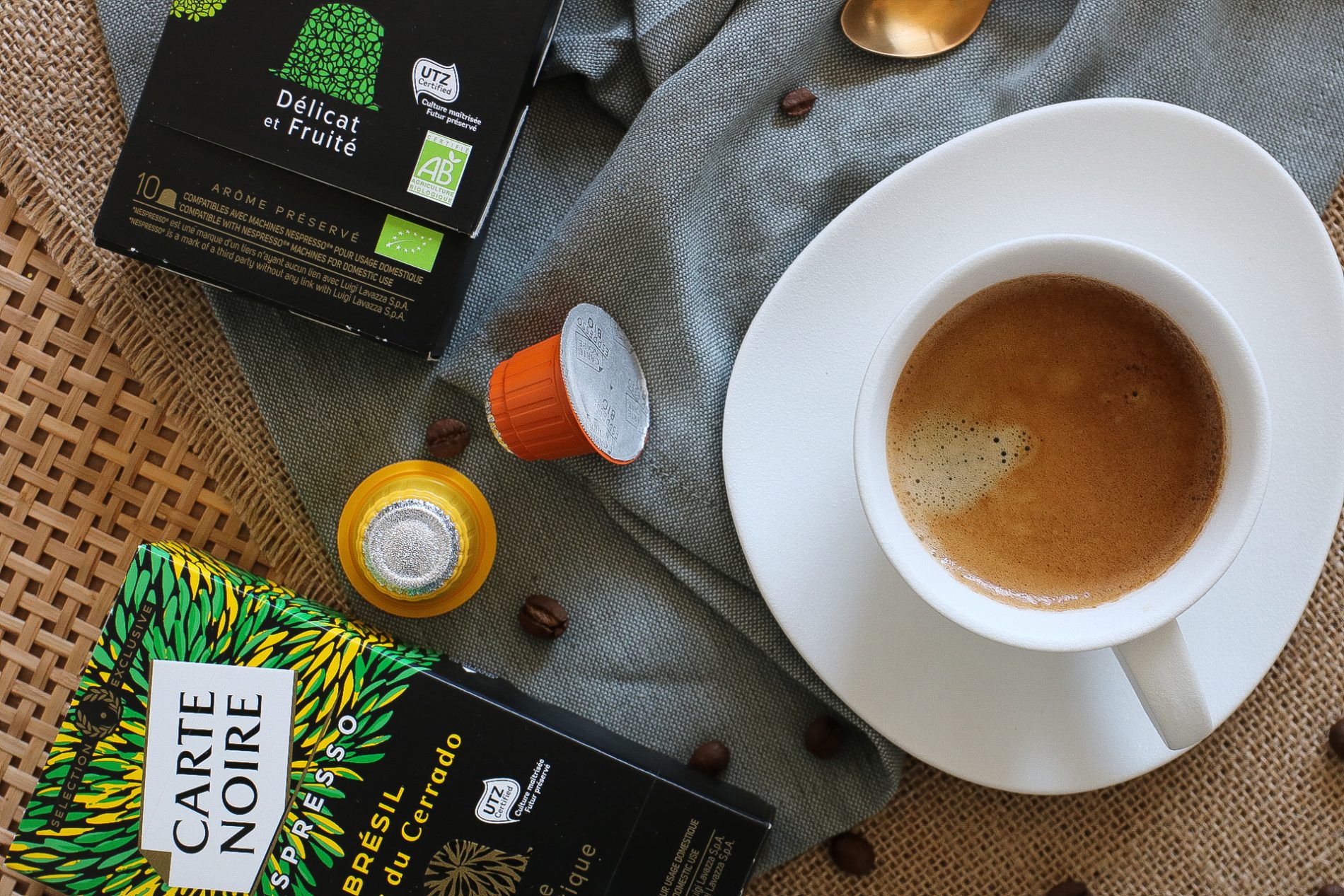 Comme vous le savez à la maison, on alterne entre l’utilisation d’une cafetière Italienne et notre machine à capsules. L’une nécessite seulement du café moulu, l’autre engendre l’achat de capsules de café. Pas toujours très écolo mais tellement pratique ! Les jours où c’est la course, je dois avouer que ma machine à capsules me sauve la vie. Et oui, on fait ce qu’on peut ! C’est pourquoi, en termes de capsules j’essaye de privilégier au maximum les capsules de café bio. Alors quand j’ai découvert que Carte Noire proposait des capsules de café bio, compatibles Nespresso®*, j’ai, tout de suite, passé commande.