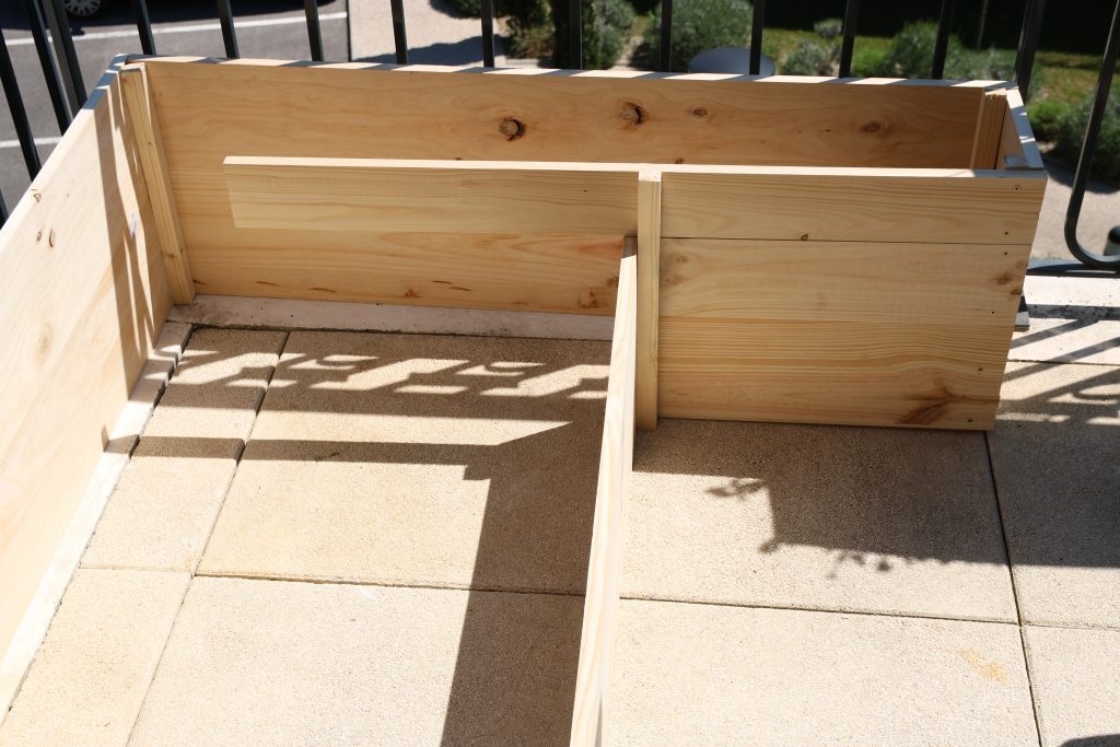 Pour la phase confection du potager, je suis allée acheter des planches de sapins, des vis et tout le reste du matériel nécessaire pour la fabrication. Une fois arrivée à la maison, place au chantier. Heureusement que j’ai un homme en or qui est assez bricoleur sinon attention les dégâts. Je pense que j’aurais pu y arriver mais non sans mal. J’y aurais surement passé 3 jours, lui l’a achevé en l’espace d’une demi-journée. Bien plus productif, non ? 😉