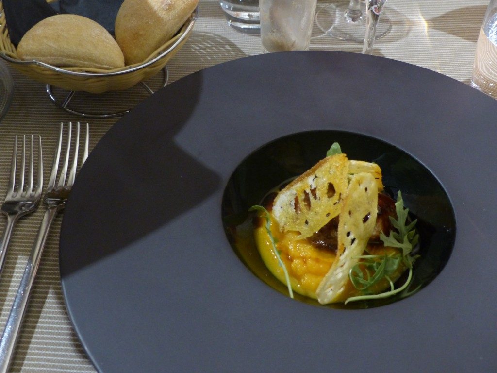 – Velouté de butternut au filet de caille. Tout simplement parfait ! Un goût à tomber par terre.