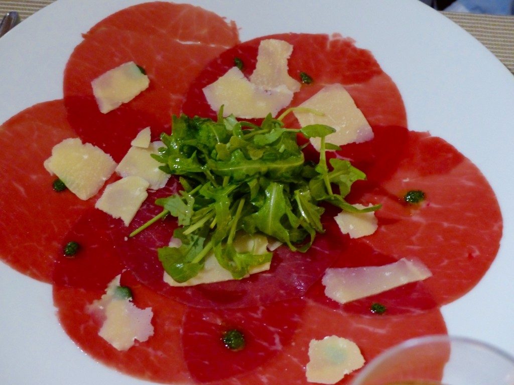– Carpaccio de boeuf. Rien de particulier à dire sur cette entrée. Un carpaccio de boeuf un peu simple qui aurait mérité un peu plus d’assaisonnement.