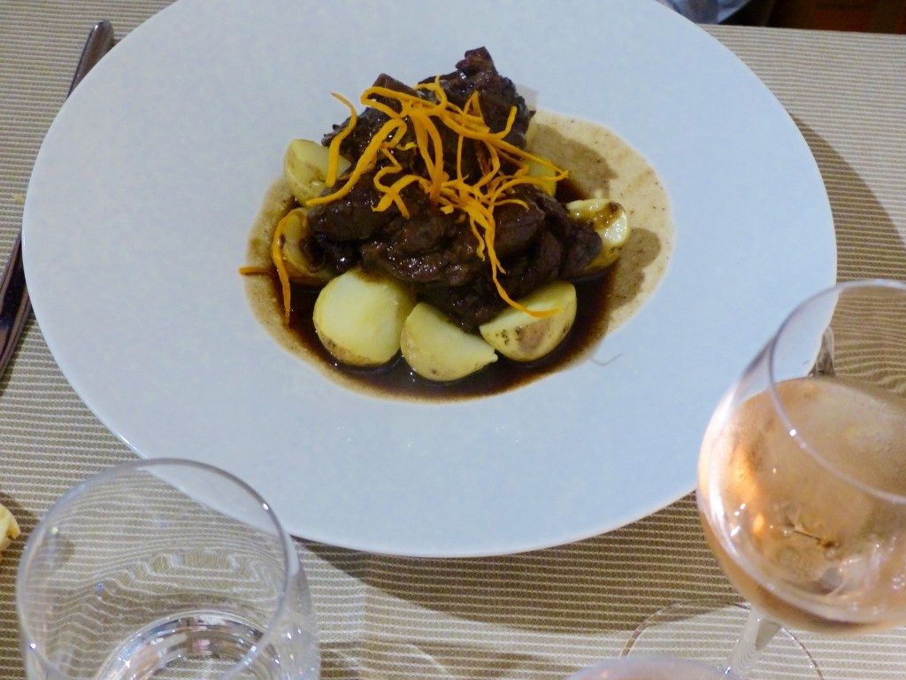 – Gardiane de Taureau. Un plat très original que je ne connaissais pas jusqu’à présent. Un plat similaire à la daube. Très très bon