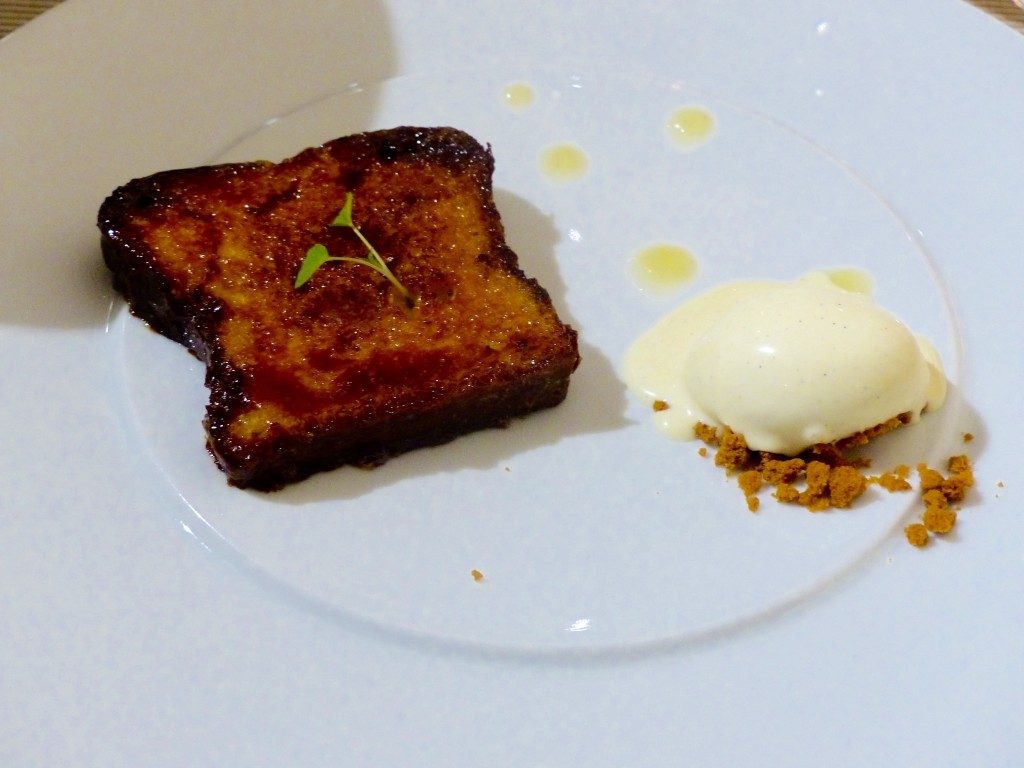 – Pain perdu & glace à la vanille-spéculos. Très bonne association.