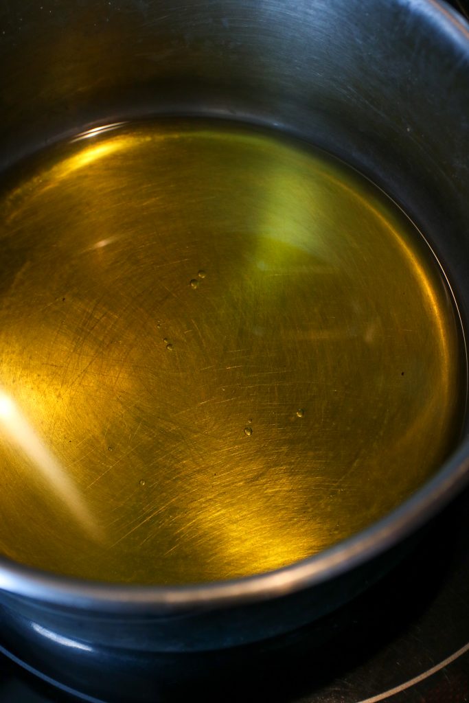 - Faites chauffer l’huile d’olive dans une casserole pendant quelques minutes