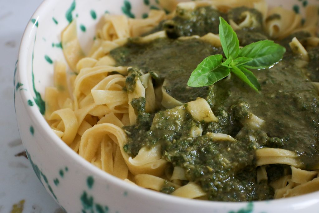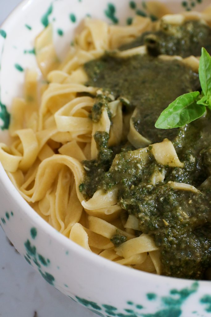 Grâce au confinement, nous nous sommes lancés dans de nombreuses expériences culinaires. Il faut dire que le fait-maison a toujours été une priorité pour nous, ça l’est devenu d’autant plus depuis quelques mois. Faire soi-même de bons petits plats avec de bons produits frais nous procure une entière satisfaction, pas vous ? Le dernier test en date, ce sont les pâtes fraîches maison agrémentées de la recette de pesto du Chef Sébastien Richard: Un délice. Vous verrez, une fois que vous aurez testé cette recette, vous ne pourrez plus revenir à des pâtes industrielles. C’est tellement autre chose !