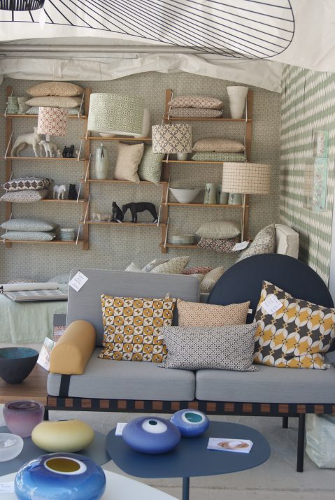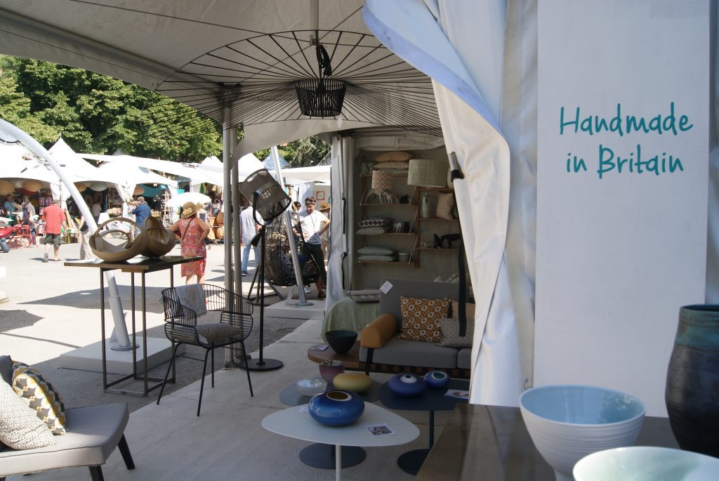 - Handmade In Britain proposait des accessoires de décoration ainsi que du mobilier très design. Un petit côté scandinave dans les formes. J’ai adoré les coussins dans les tons moutarde et gris. So british !