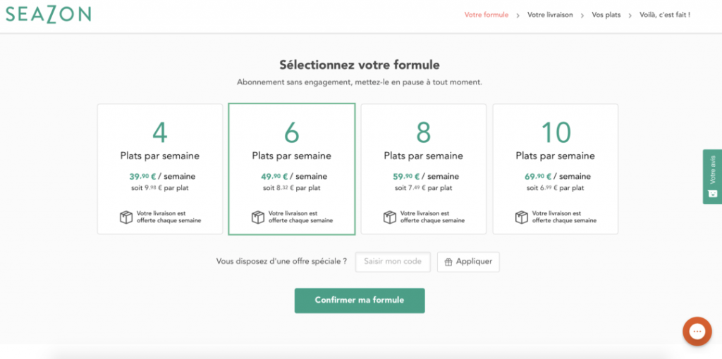 Une fois votre sélection faite, vous choisissez la date de livraison (les livraisons se font via Chronopost) et le tour est joué ! Il ne vous reste plus qu’à être patient avant de déguster vos plats préparés avec amour par les chefs SEAZON !