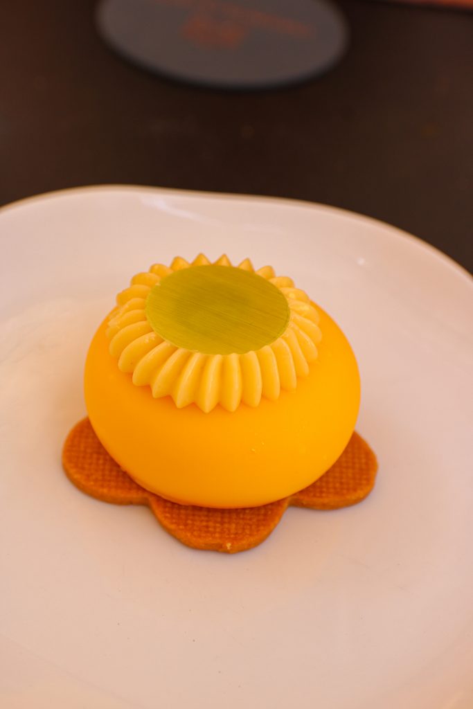 Mention spéciale pour UNE VISION DE LA TOMATE MOZZARELLA Nuage de burrata et crumble d’épices fumées & pour la madeleine géante.