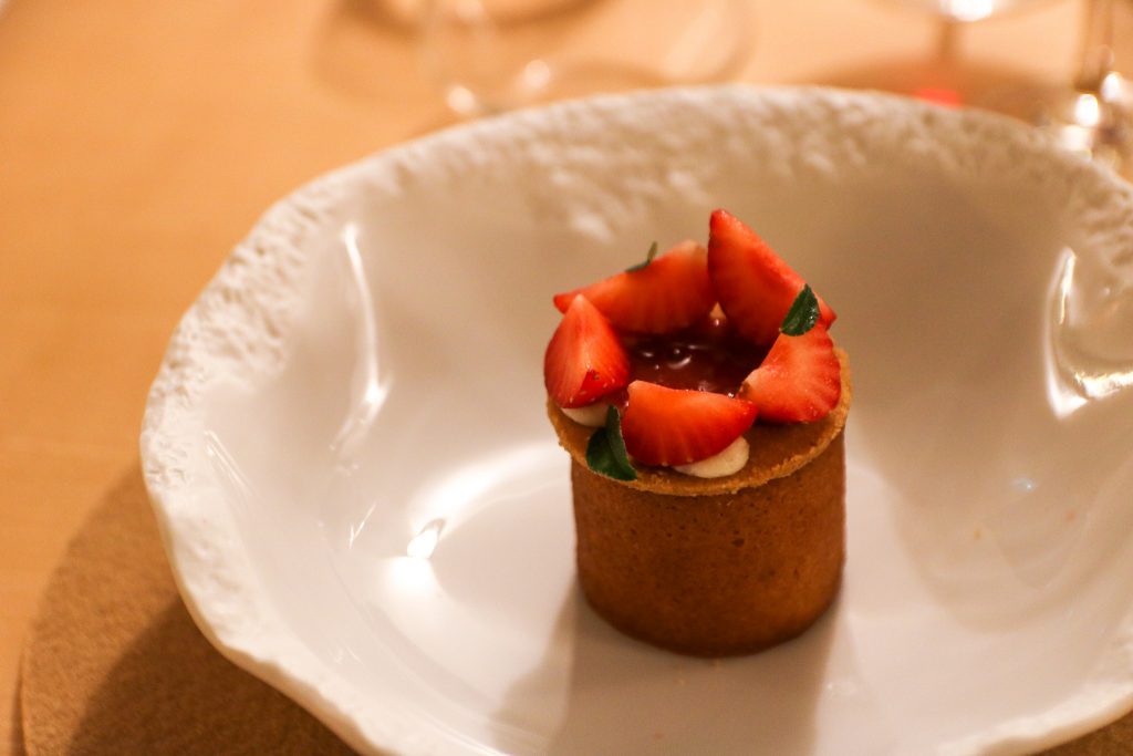 Mention spéciale pour la Tartelette de jeunes légumes de Provence Caillé de chèvre de Brégalon et herbes du jardin (plat signature du chef) & Fraises de pays au poivre de Sichuan tuile croustillante et sorbet maison.