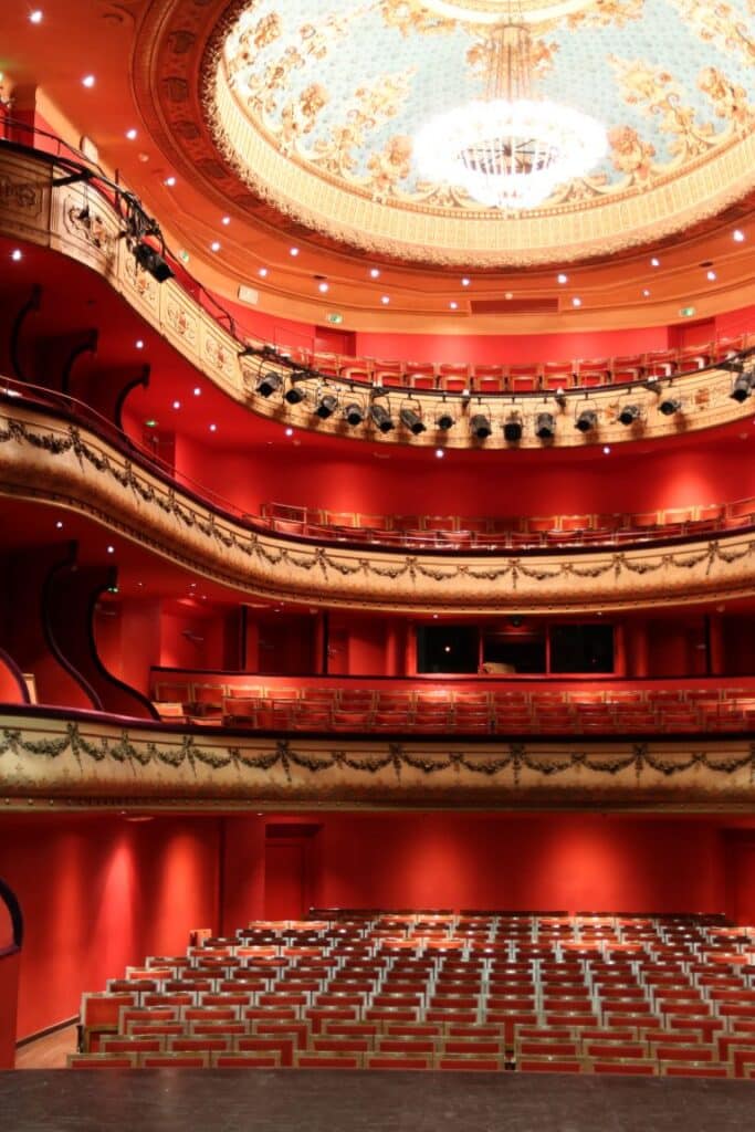 Même après 27 ans à sillonner les rues d’Aix-en-Provence, je n’imaginais pas une seule seconde qu’un Monument Historique se cachait derrière les murs de la rue de l’Opéra. Pour être précise, c’est au 21, rue de l’Opéra que se situe le célèbre Théâtre du Jeu de Paume. Un théâtre à l’italienne, de 493 places, à la façade si discrète qu’on ne soupçonne pas une seule seconde ce qui se trouve derrière. Ce théâtre date du XVIIIè siècle mais a été rénové en 1998 par la municipalité. Une vraie merveille ! Alors pour découvrir l’envers du décor, je vous propose de me suivre.
