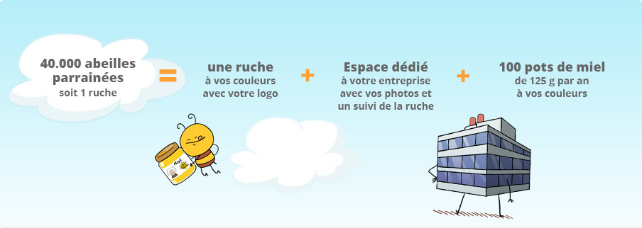 Pour les entreprises, il s’agit plutôt de parrainer une ruche entière chez l’apiculteur ou bien directement au sein de votre entreprise.