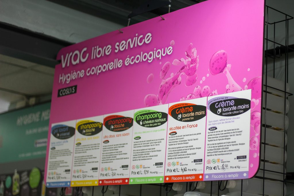 Vous venez en magasin avec vos contenants vides (si vous n’en avez pas vous pourrez en acheter sur place) et vous les remplissez au rayon vrac libre service de la marque Coslys. Une démarche de plus vers le zéro déchet qui vous permettra également de faire des économies. Car acheter en vrac, coûte moins cher.