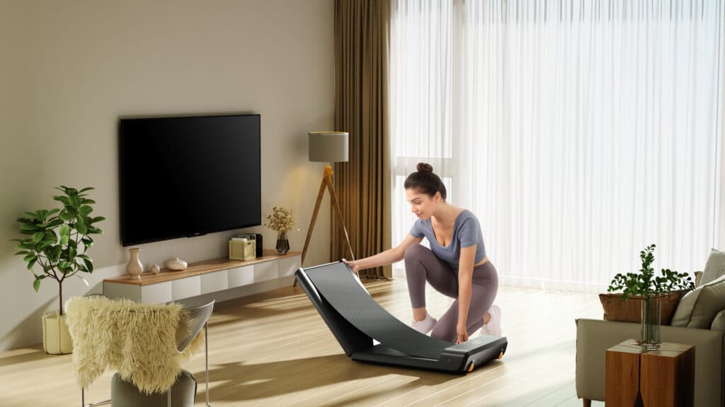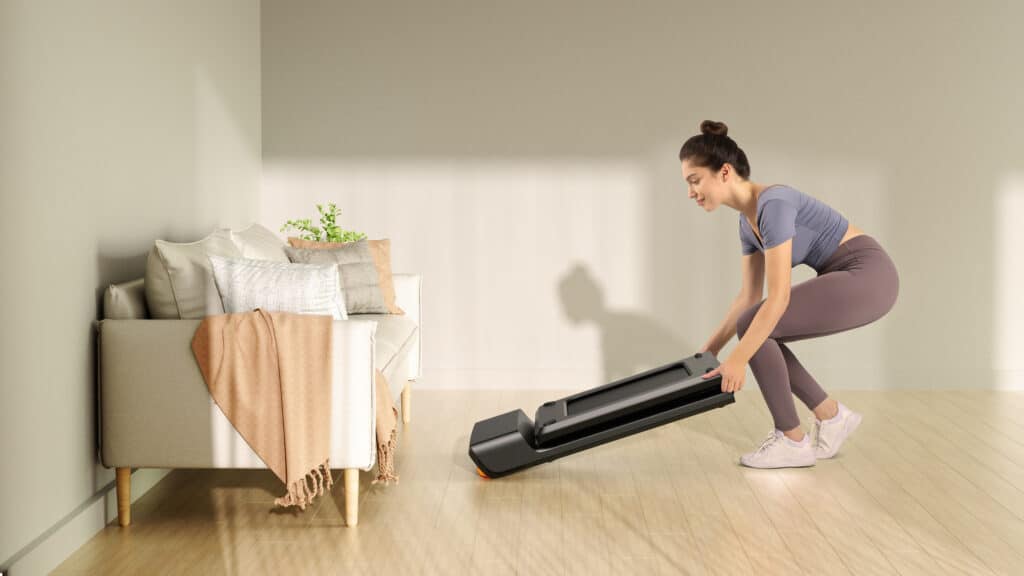 Son format pliable et compact est un véritable atout. Une fois replié, il se range discrètement sous un canapé ou sous un lit. C’est une solution idéale pour les petits espaces, sans compromis sur la stabilité, la robustesse et le confort de marche. Le Walking Pad Pro A1 est également silencieux, ce qui permet de marcher chez soi tout en regardant une série, en écoutant un podcast ou en travaillant.